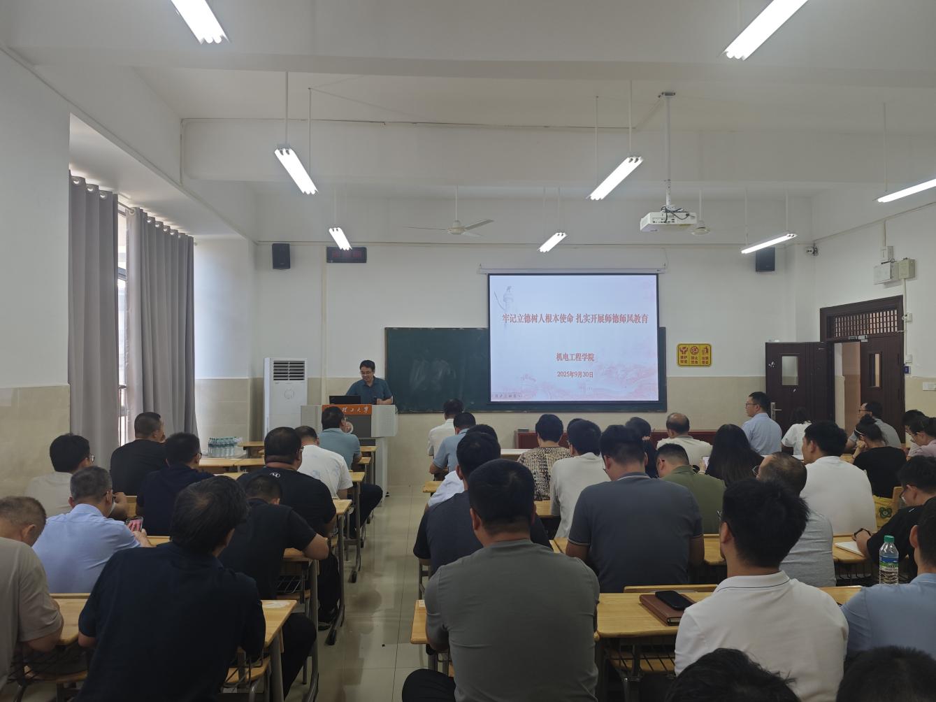 古莹奎指出,全体教职工要把师德师风建设摆在工作的重要位置,提高思想认识,把握新时代教师职业规范的深刻内涵,以更高的标准严格要求自己,筑牢初心使命。他强调,学院将持续强化师德师风长效机制建设,严格考核评价,营造风清气正的育人环境,引导全体教师以更高标准、更严要求,践行“为党育人、为国育才”的初心使命,为培养担当民族复兴大任的时代新人贡献机电力量。