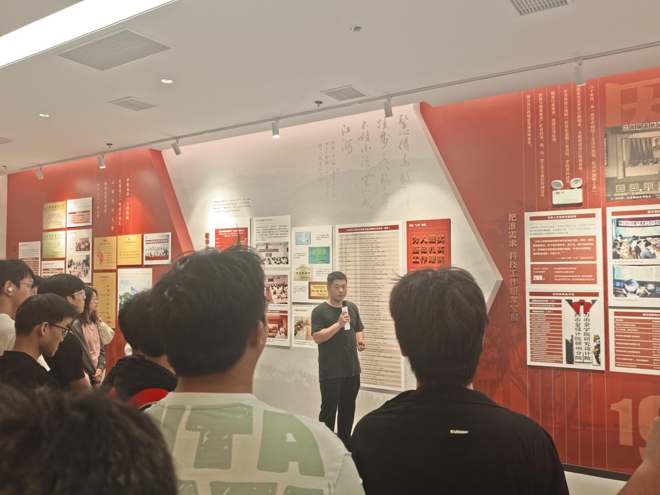 在辅导员和学生讲解员的带领下,同学们依次走进校史馆、科技创新馆与苏区精神展馆。步入校史馆,时光的卷轴在眼前缓缓铺开,从建校初的创业维艰,到一代代师生在时代洪流中弦歌不辍的坚守,历史的脉络清晰可见。同学们驻足于陈列的照片、文献和荣誉奖杯前,深入了解学校的历史沿革和光辉历程,感悟学校在人才培养、科学研究和社会服务等方面的特殊贡献,自豪之情油然而生。